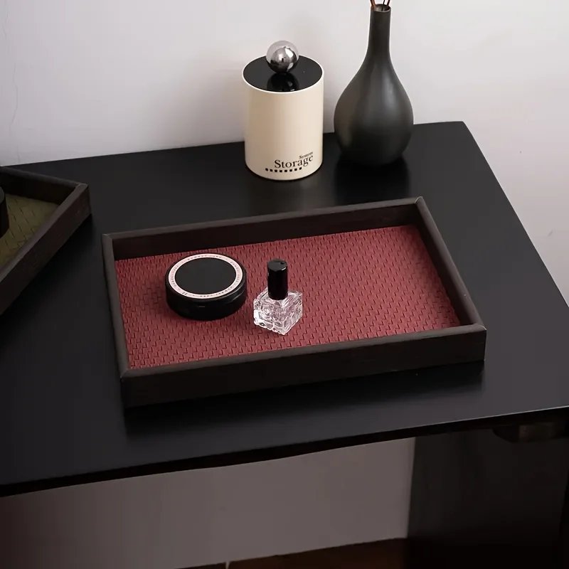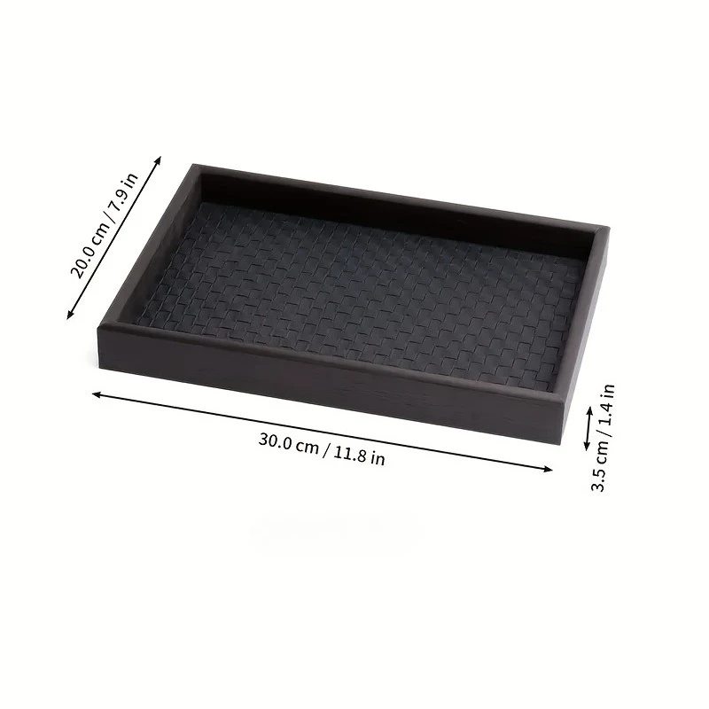Keep your daily essentials in perfect order with a touch of executive sophistication. This valet tray features a rich, woven leather interior framed by dark wood, combining tactile texture with architectural precision. It provides a dedicated, quiet landing spot for your keys and accessories, ensuring you never misplace your most important items. Organize your routine with a piece that defines professional elegance and thoughtful minimalism.